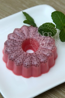 Air, agar-agar, gula, garam, vanili dimasak mendidih.
